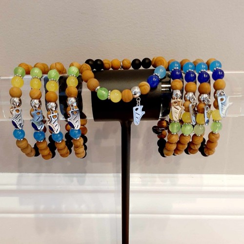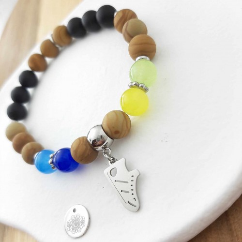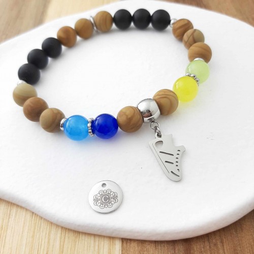 Bracelet Cardio Plein Air St-Hilaire/Beloeil créé à partir de pierres semi-précieuses telles que le jade, l'onyx et le jaspe avec breloque & insertions en acier inoxydable.