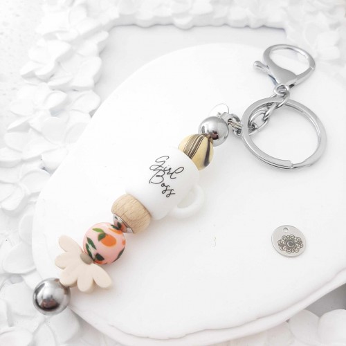 - Porte-clés fait de perles de silicones, bois et insertions métalliques