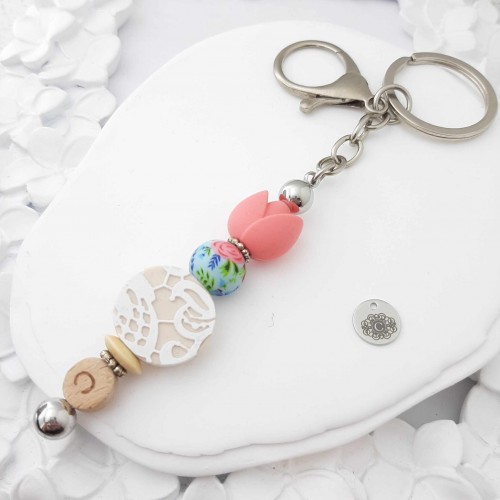 - Porte-clés fait de perles de silicones, bois et insertions métalliques